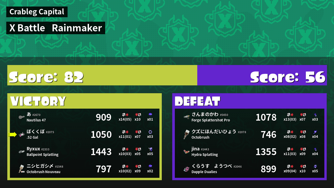 | Mode | Rainmaker - X Battle | ||