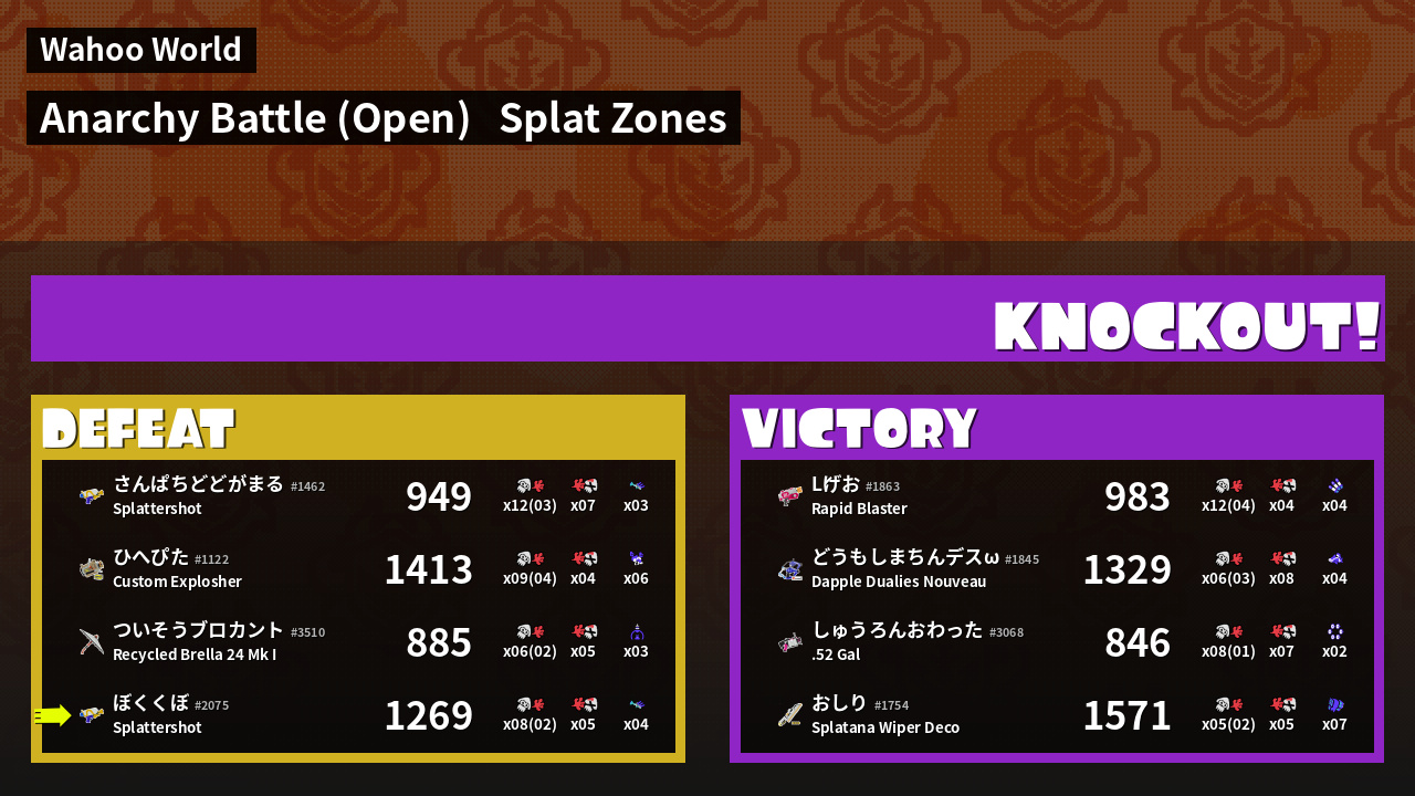 | Mode | Splat Zones - Anarchy Battle (Open) | ||