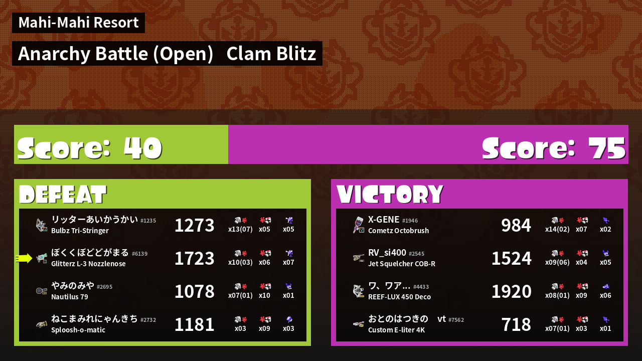 | Mode | Clam Blitz - Anarchy Battle (Open) |
