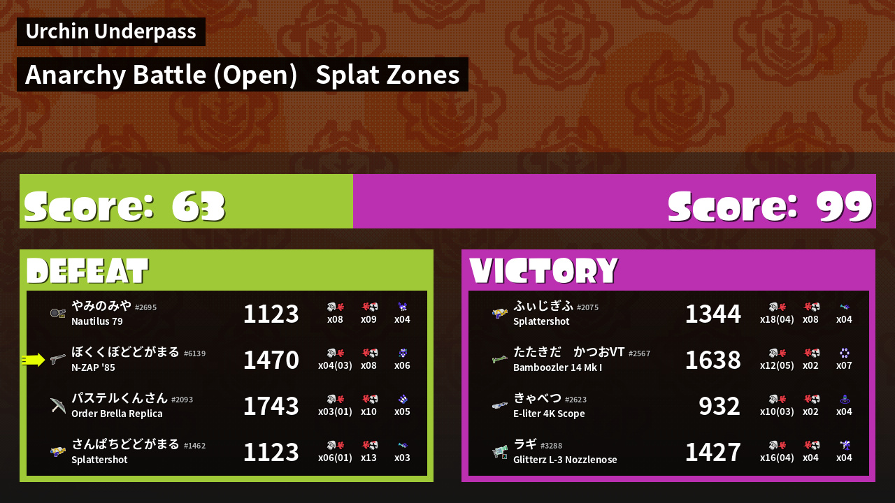 | Mode | Splat Zones - Anarchy Battle (Open) |