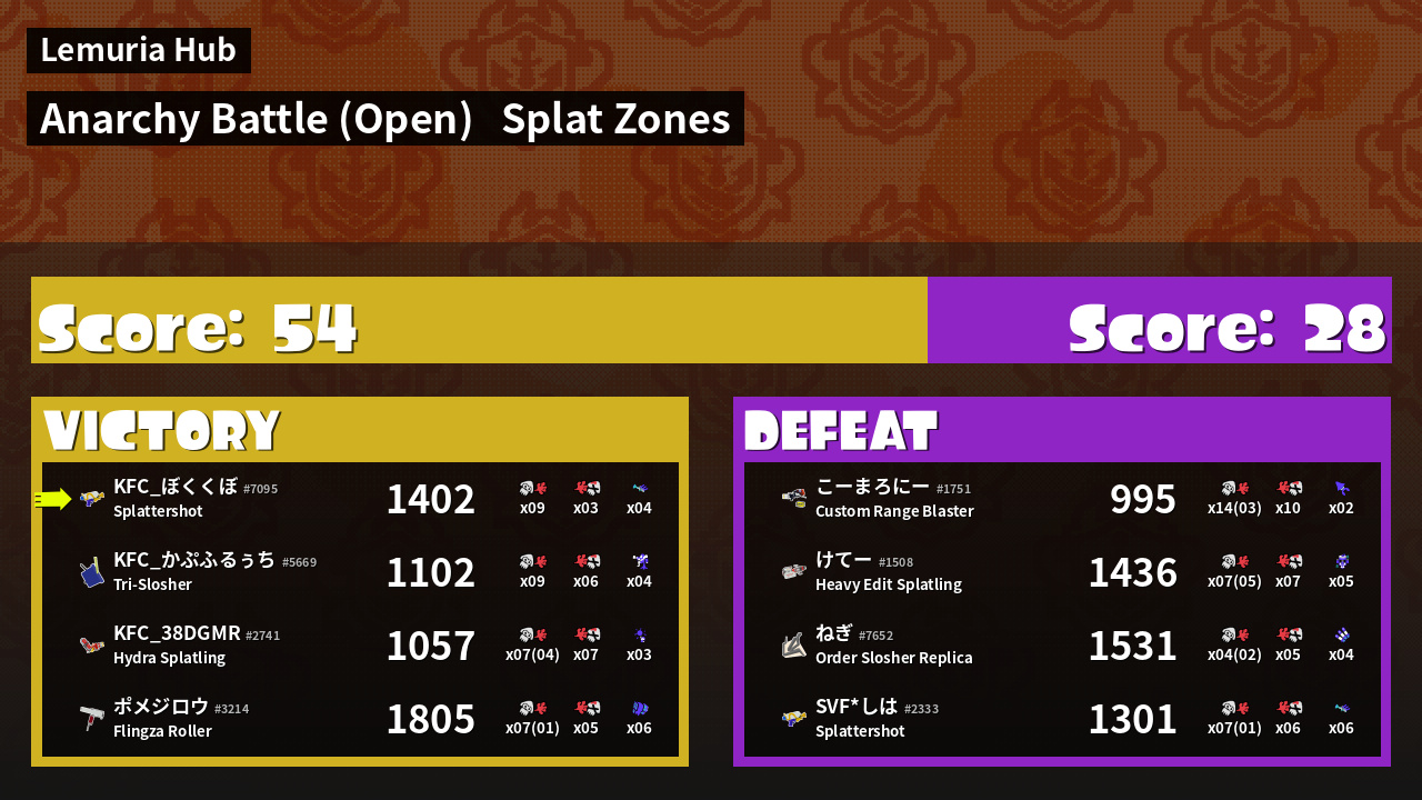 | Mode | Splat Zones - Anarchy Battle (Open) | ||