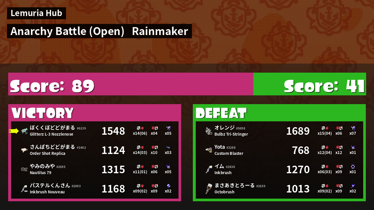 | Mode | Rainmaker - Anarchy Battle (Open) |