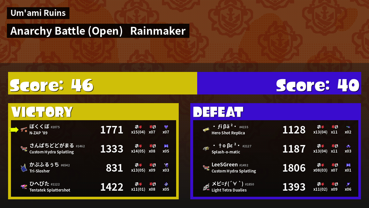 | Mode | Rainmaker - Anarchy Battle (Open) | ||