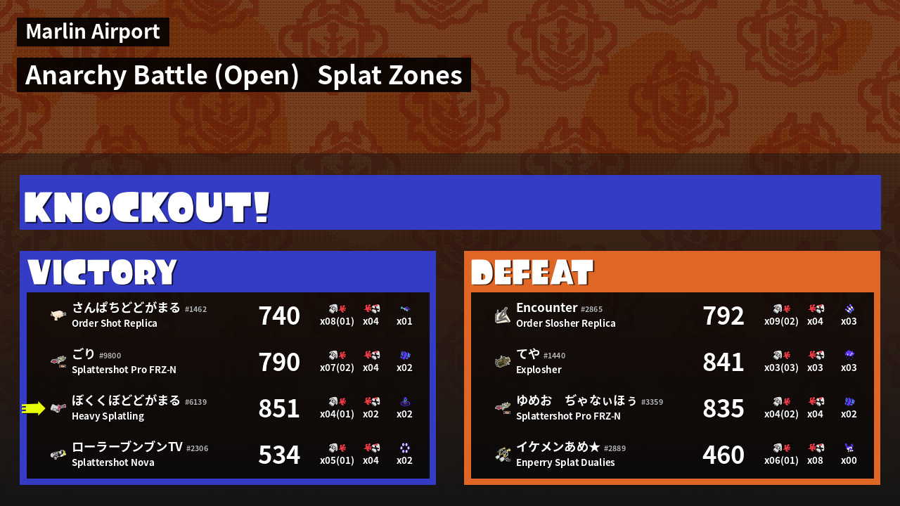 | Mode | Splat Zones - Anarchy Battle (Open) |