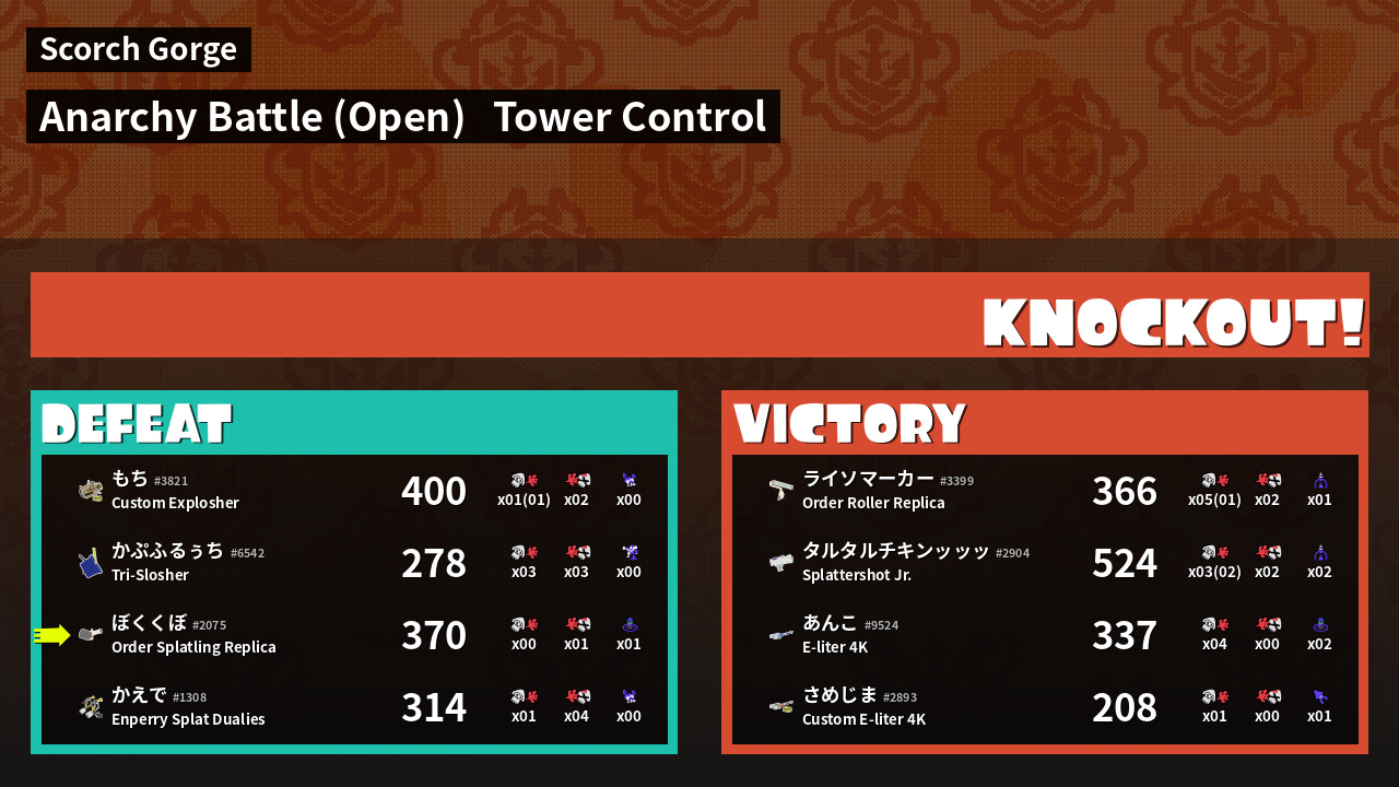 | Mode | Tower Control - Anarchy Battle (Open) | ||