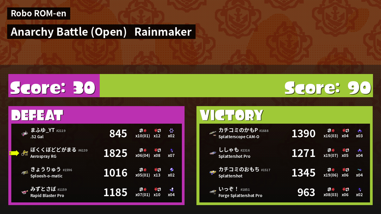 | Mode | Rainmaker - Anarchy Battle (Open) |