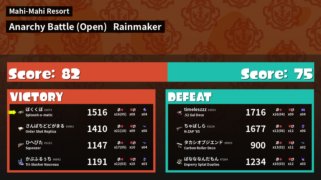 | Mode | Rainmaker - Anarchy Battle (Open) | ||