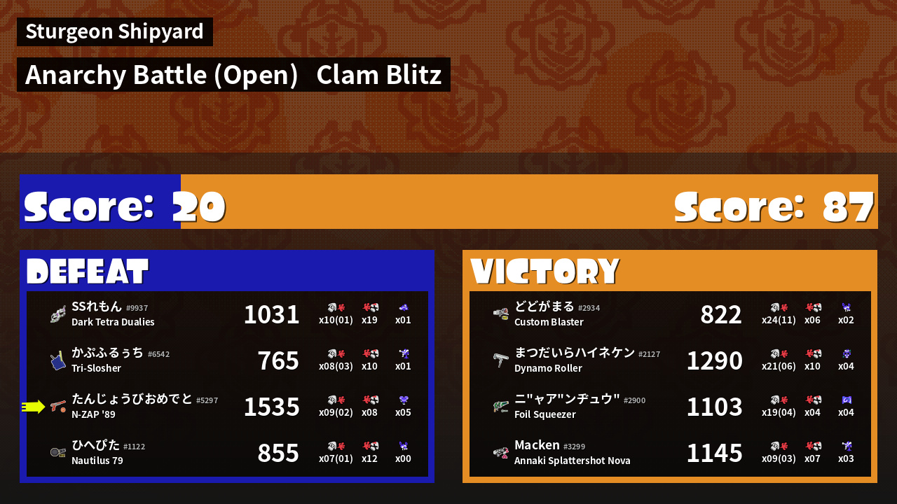 | Mode | Clam Blitz - Anarchy Battle (Open) | ||