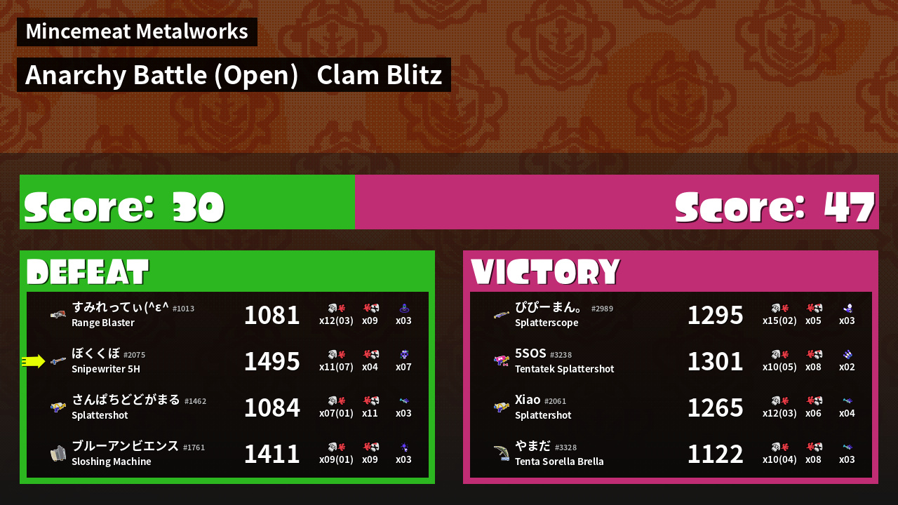 | Mode | Clam Blitz - Anarchy Battle (Open) | ||