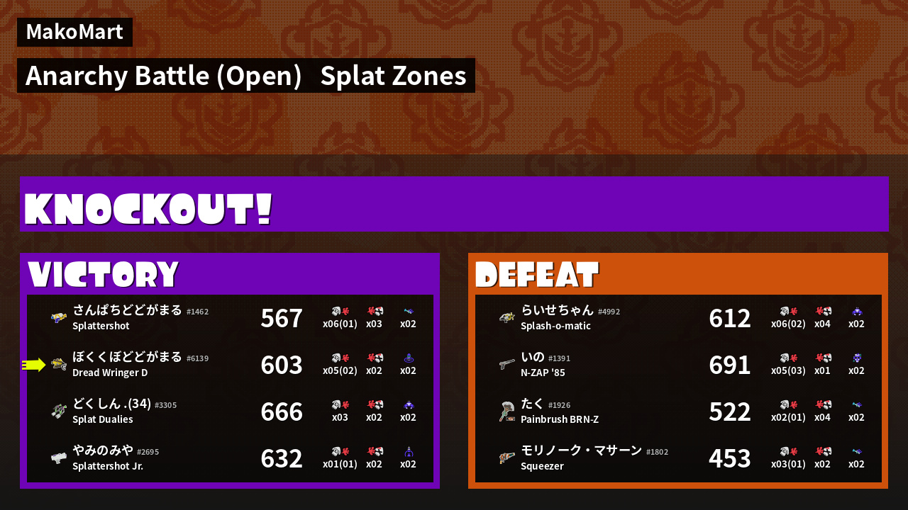 | Mode | Splat Zones - Anarchy Battle (Open) |
