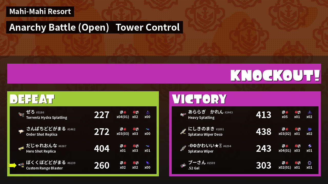 | Mode | Tower Control - Anarchy Battle (Open) |