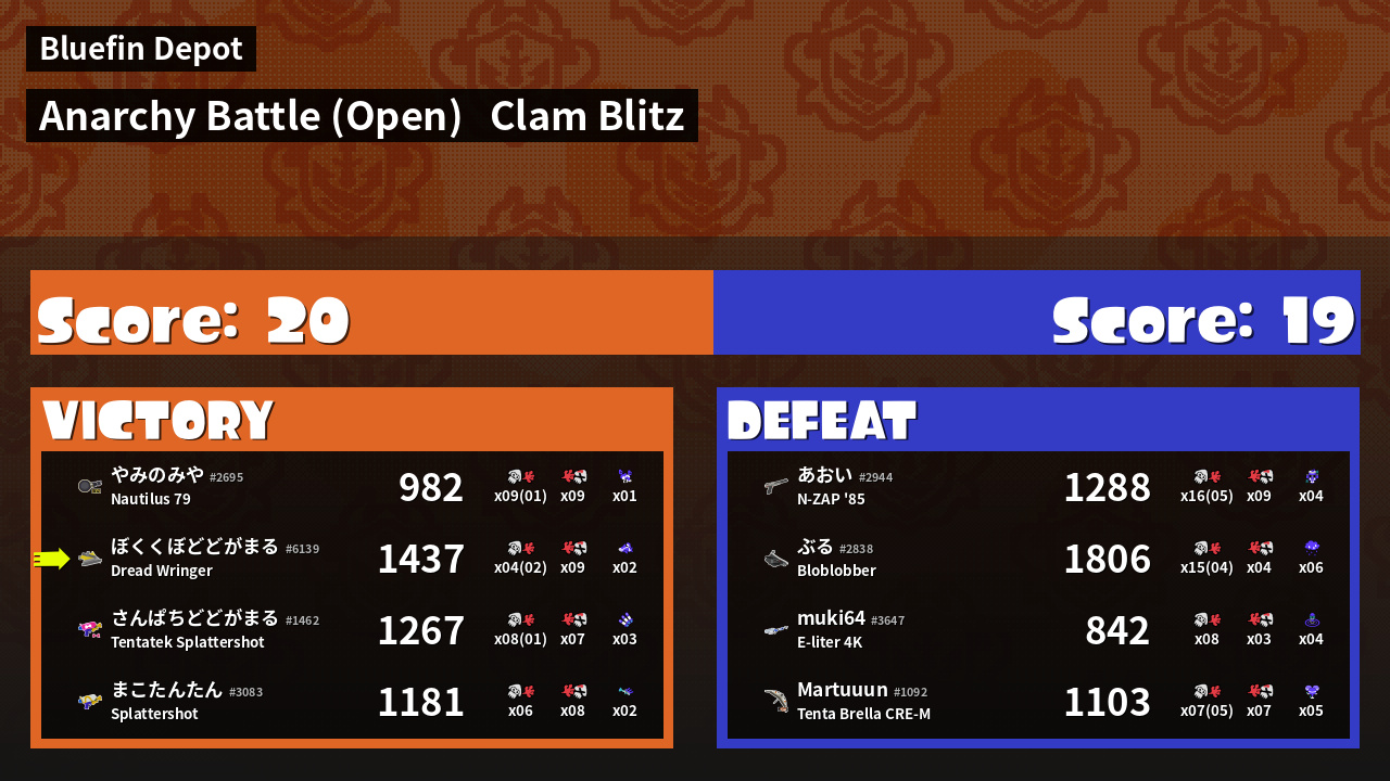 | Mode | Clam Blitz - Anarchy Battle (Open) |