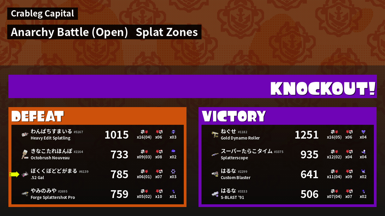 | Mode | Splat Zones - Anarchy Battle (Open) |