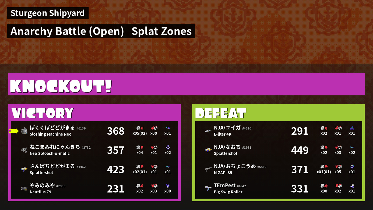 | Mode | Splat Zones - Anarchy Battle (Open) |