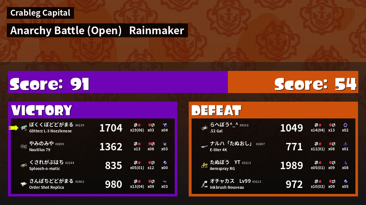 | Mode | Rainmaker - Anarchy Battle (Open) |