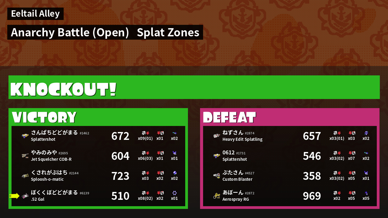 | Mode | Splat Zones - Anarchy Battle (Open) |