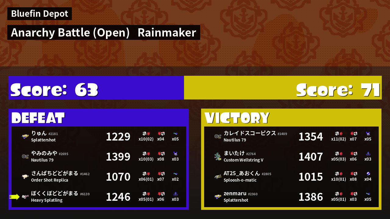 | Mode | Rainmaker - Anarchy Battle (Open) |