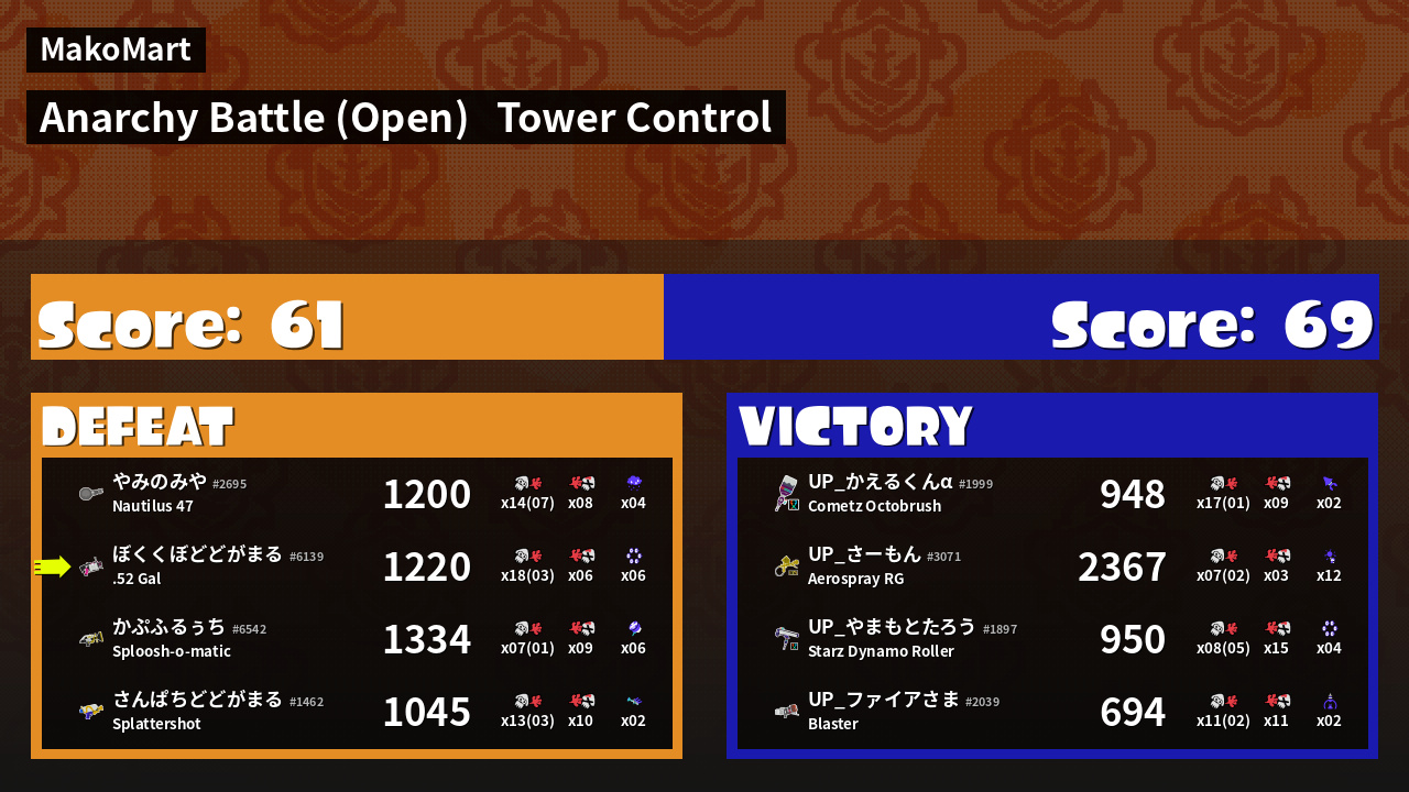 | Mode | Tower Control - Anarchy Battle (Open) |
