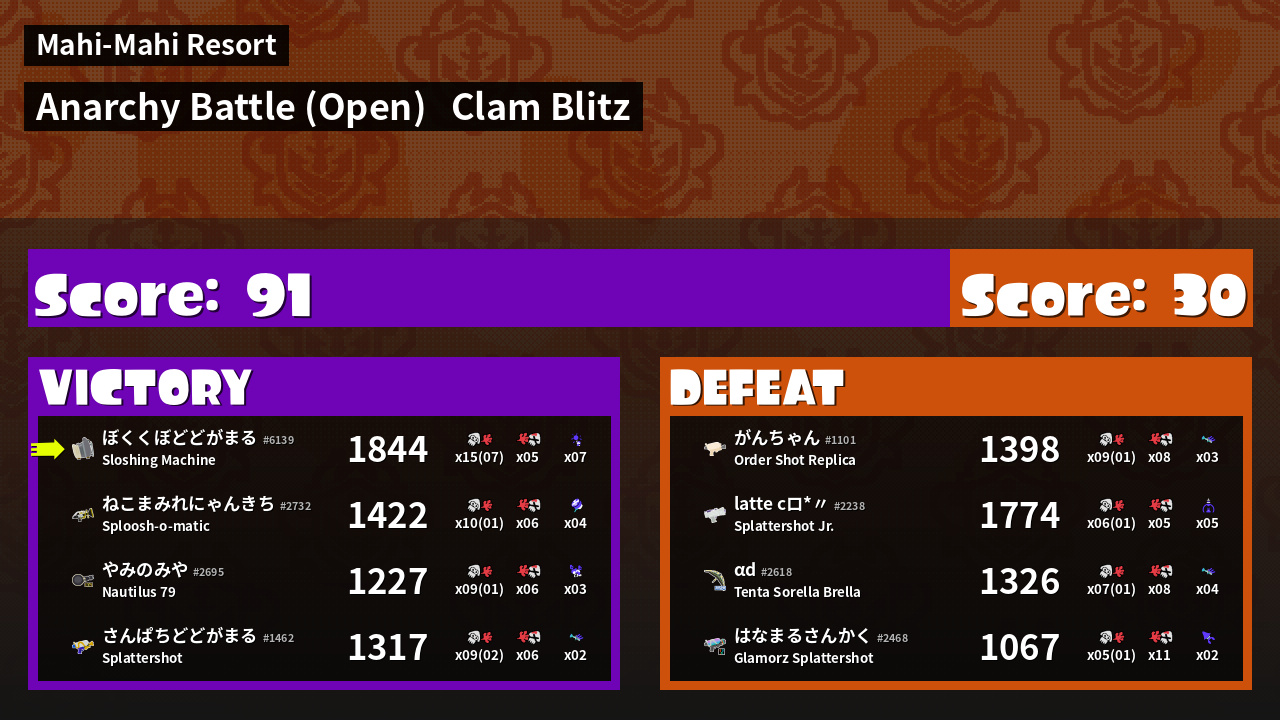 | Mode | Clam Blitz - Anarchy Battle (Open) |