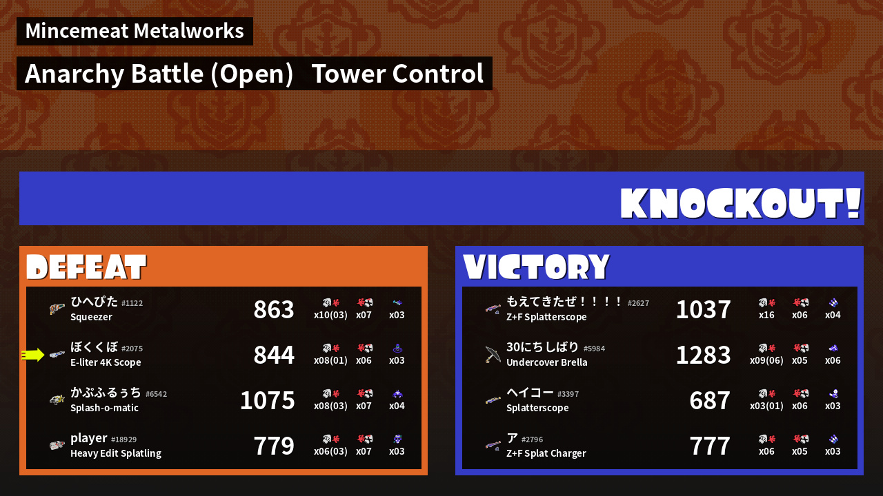 | Mode | Tower Control - Anarchy Battle (Open) | ||