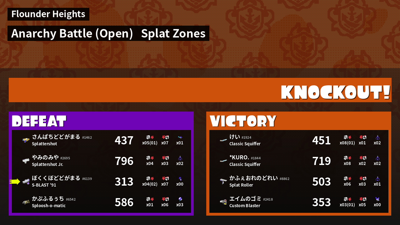 | Mode | Splat Zones - Anarchy Battle (Open) |