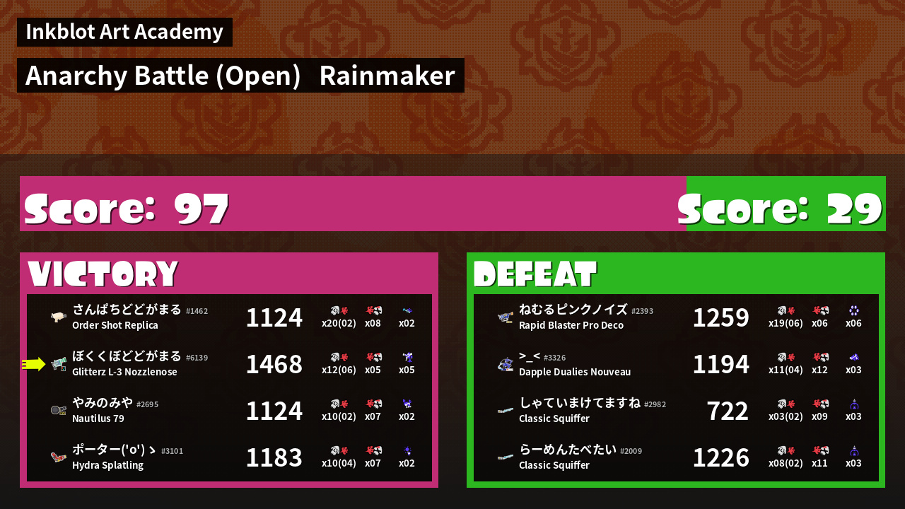 | Mode | Rainmaker - Anarchy Battle (Open) |