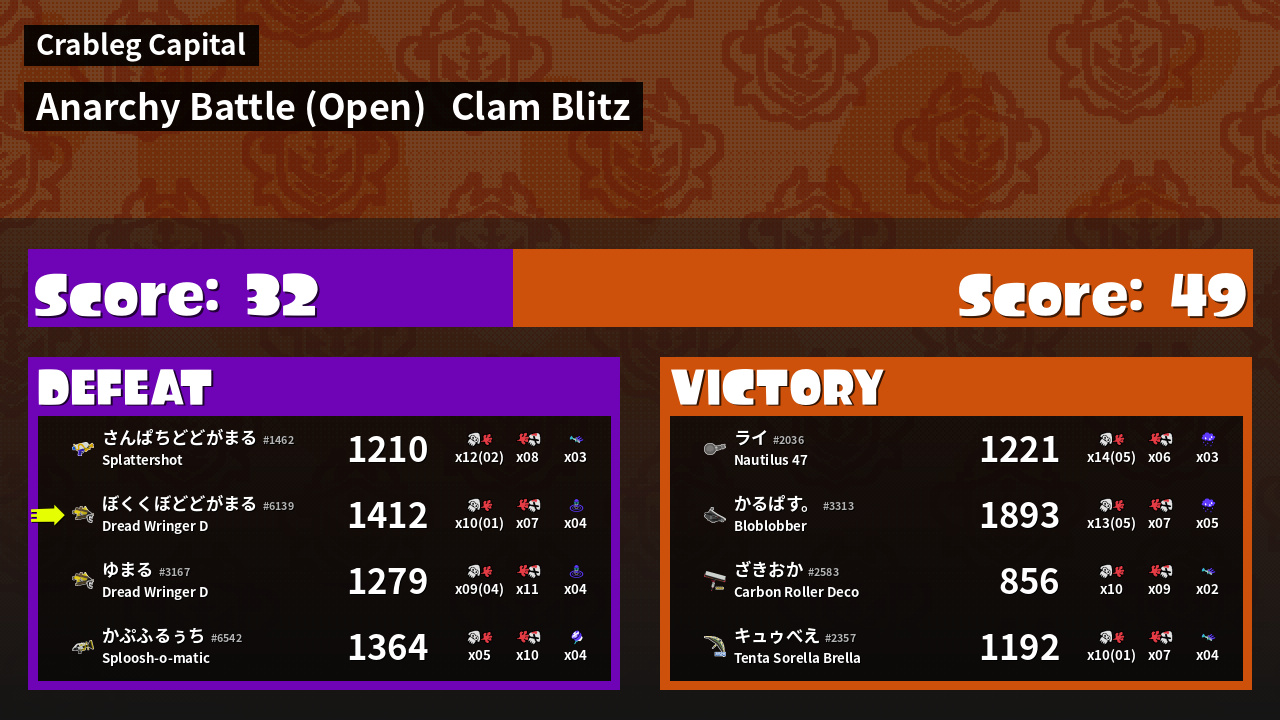 | Mode | Clam Blitz - Anarchy Battle (Open) |