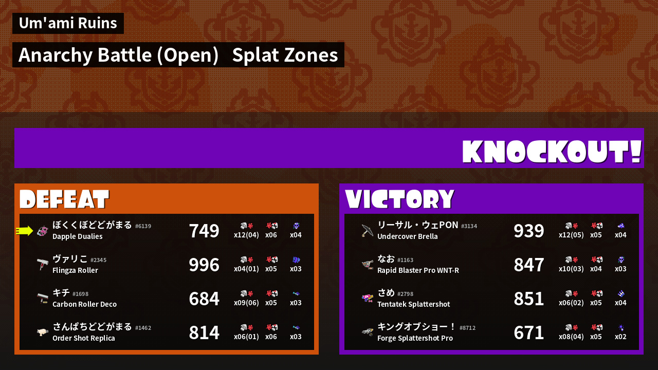 | Mode | Splat Zones - Anarchy Battle (Open) |