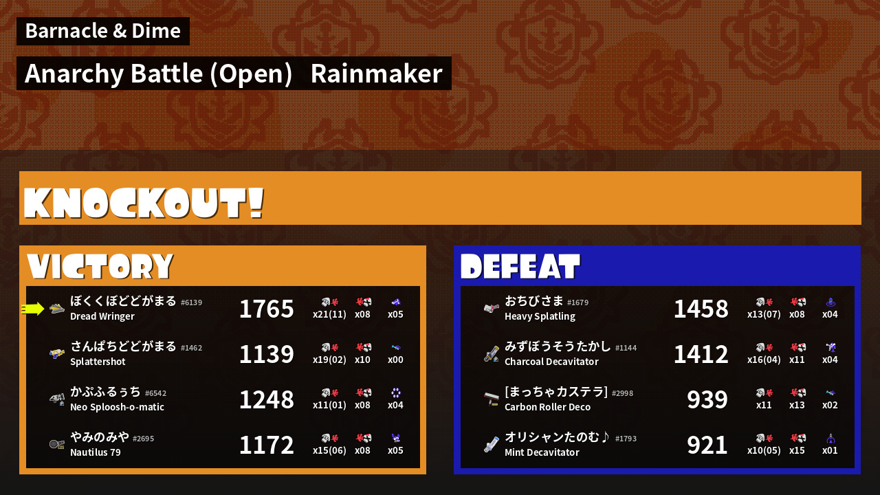 | Mode | Rainmaker - Anarchy Battle (Open) |