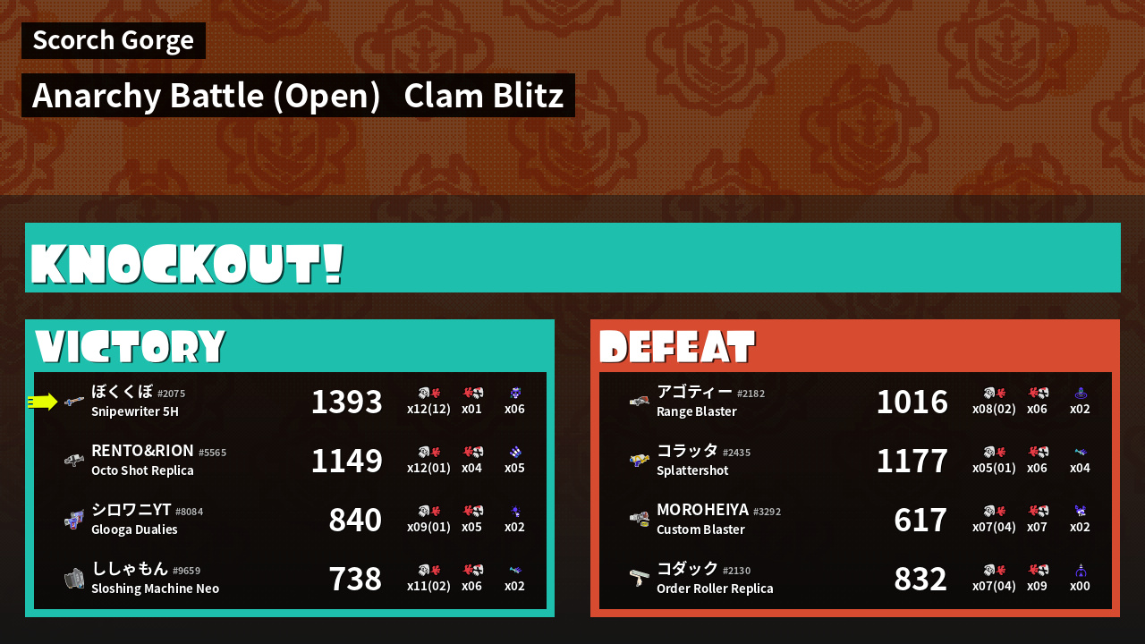 | Mode | Clam Blitz - Anarchy Battle (Open) | ||