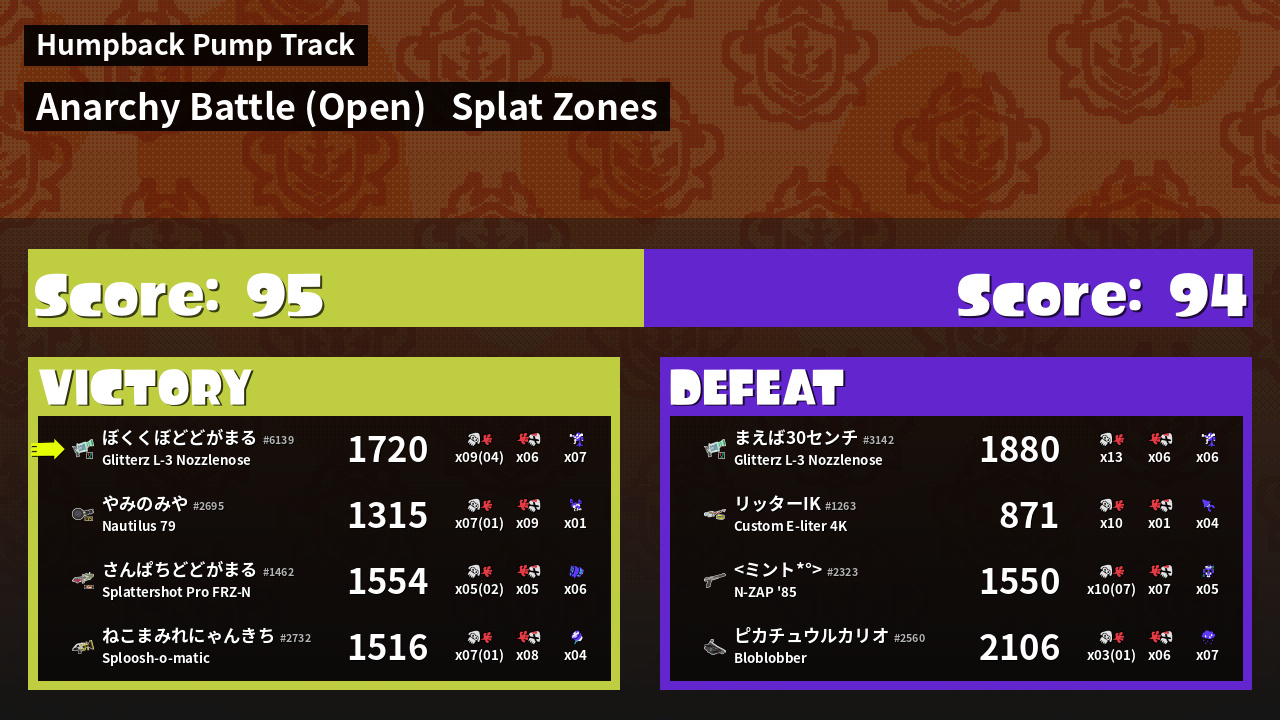 | Mode | Splat Zones - Anarchy Battle (Open) |