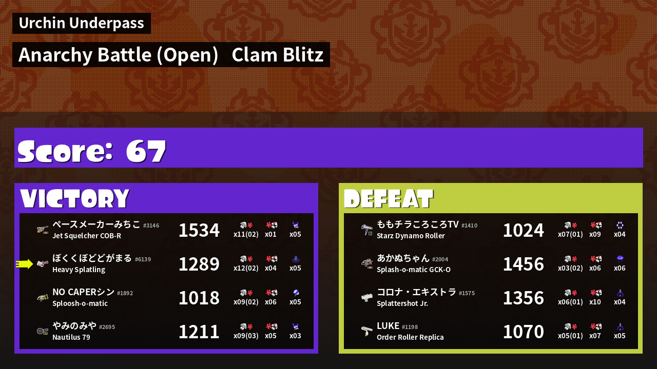 | Mode | Clam Blitz - Anarchy Battle (Open) |
