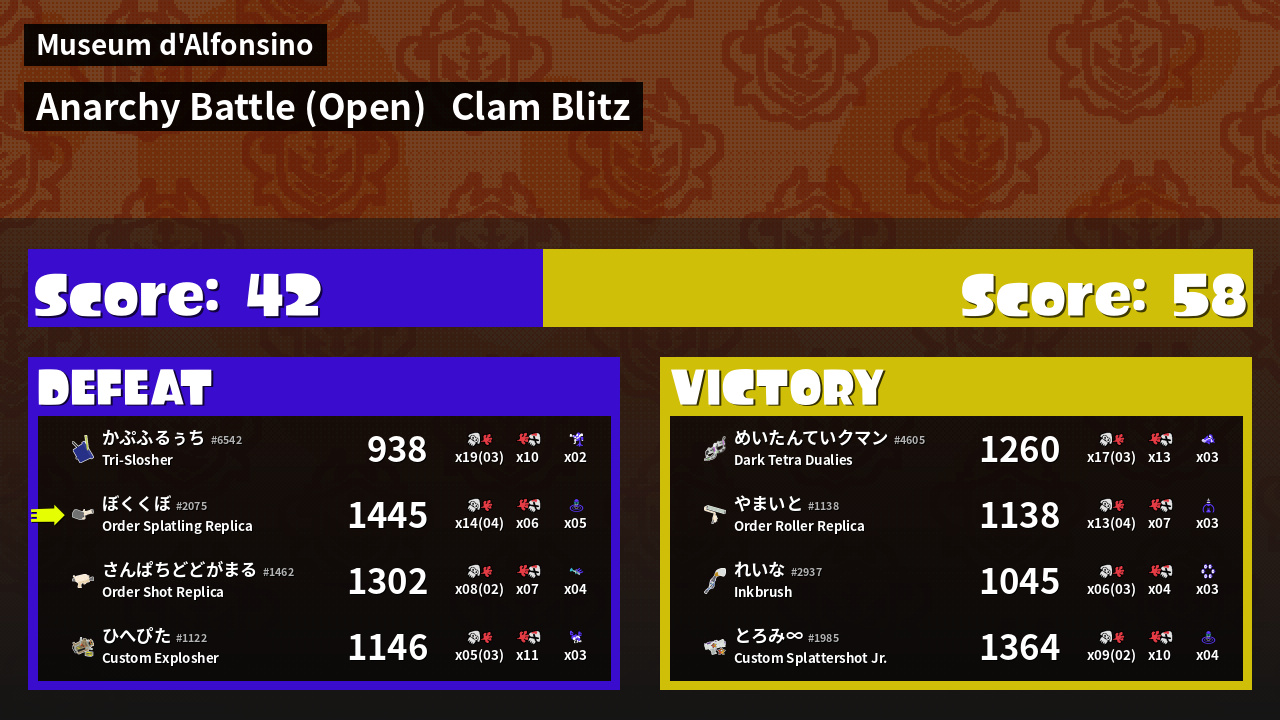 | Mode | Clam Blitz - Anarchy Battle (Open) | ||