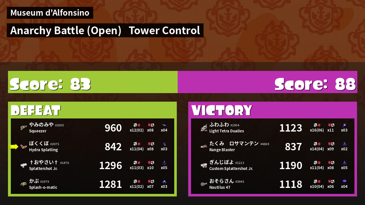 | Mode | Tower Control - Anarchy Battle (Open) | ||