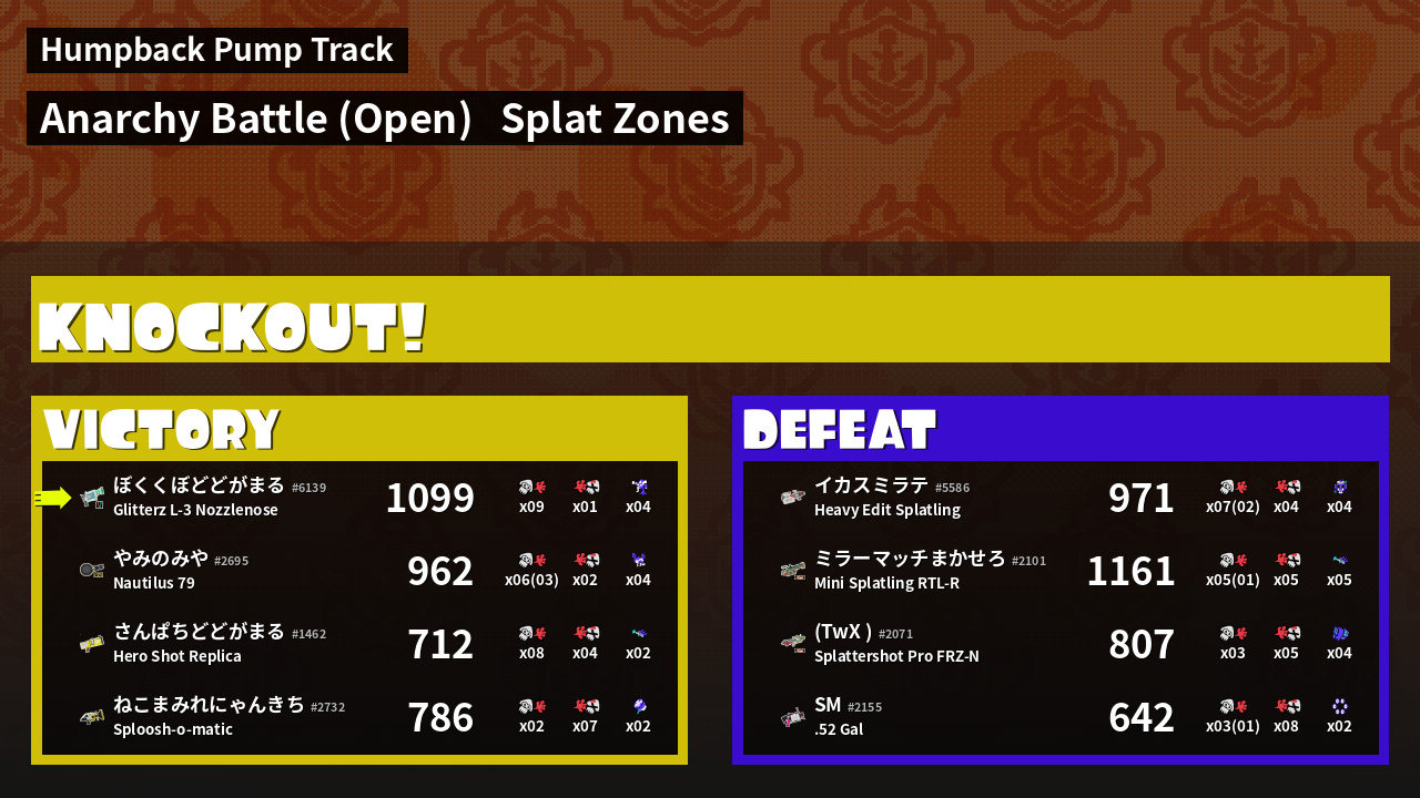 | Mode | Splat Zones - Anarchy Battle (Open) |