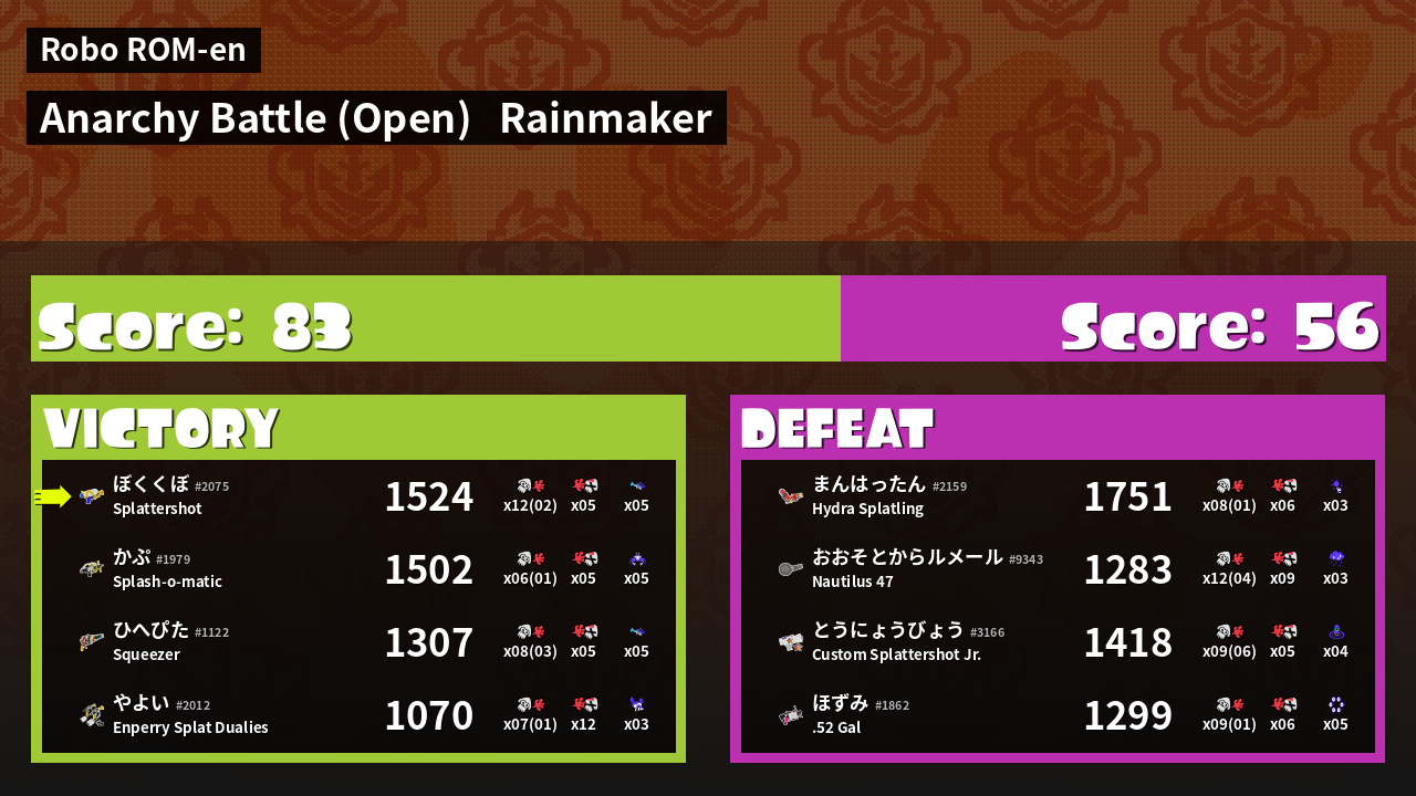 | Mode | Rainmaker - Anarchy Battle (Open) | ||