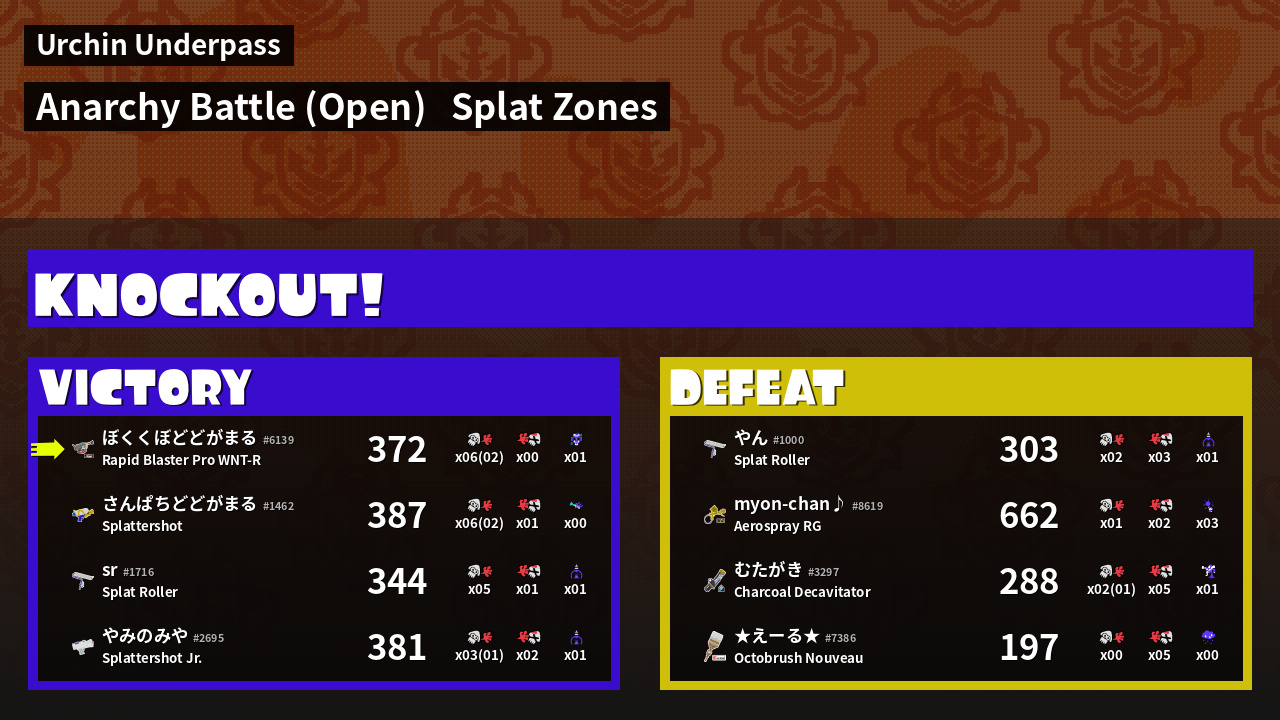 | Mode | Splat Zones - Anarchy Battle (Open) |