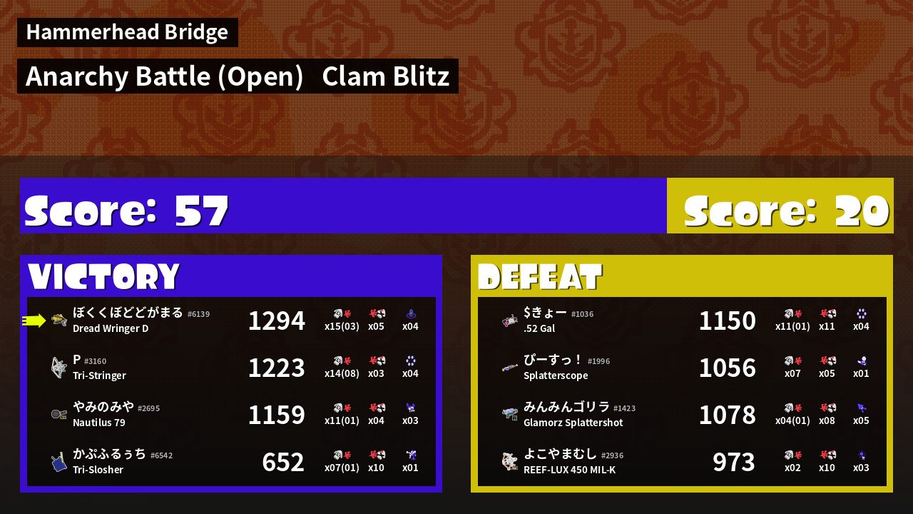 | Mode | Clam Blitz - Anarchy Battle (Open) |