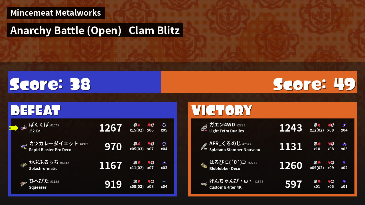 | Mode | Clam Blitz - Anarchy Battle (Open) | ||