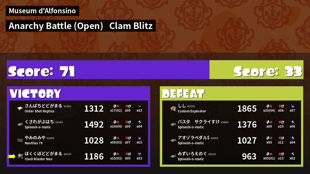 | Mode | Clam Blitz - Anarchy Battle (Open) |