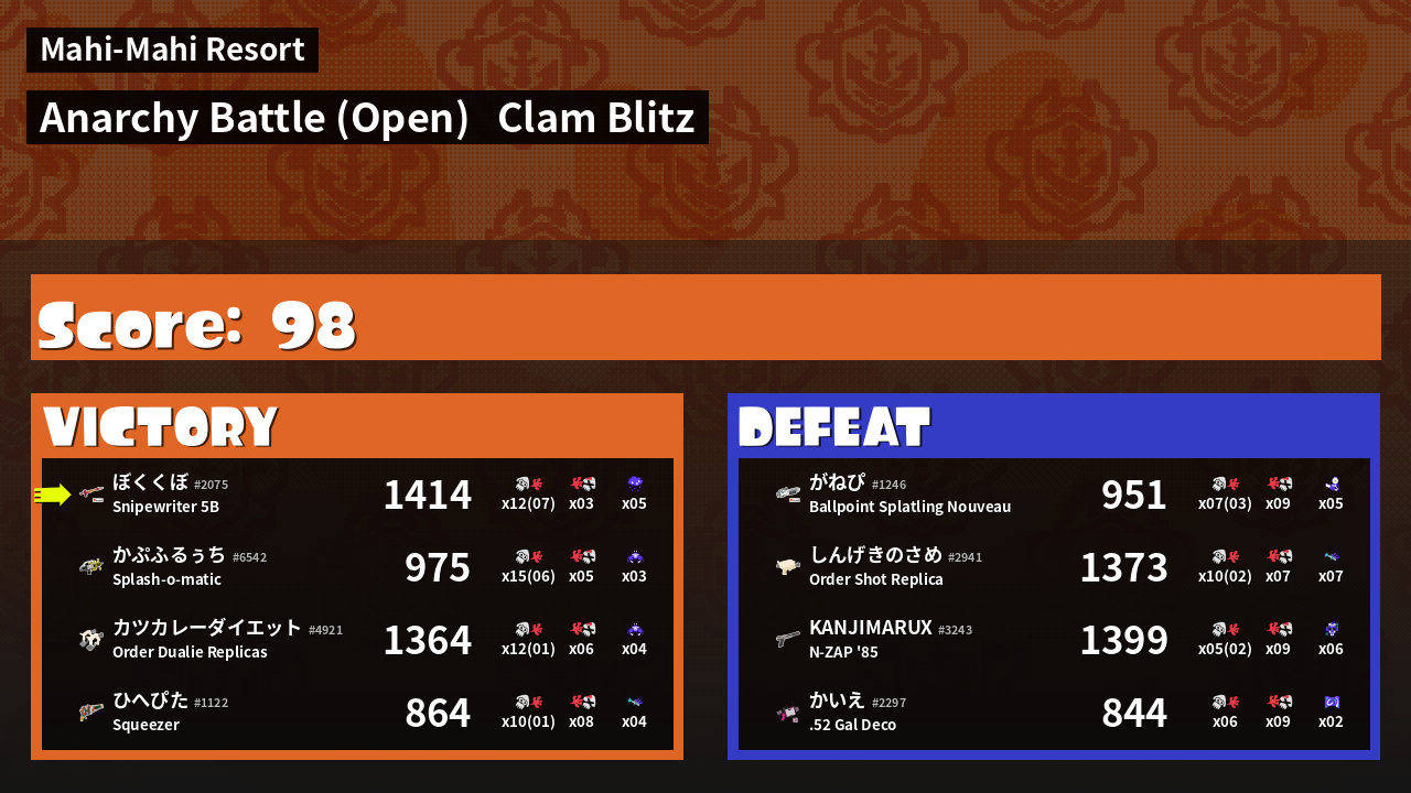 | Mode | Clam Blitz - Anarchy Battle (Open) | ||