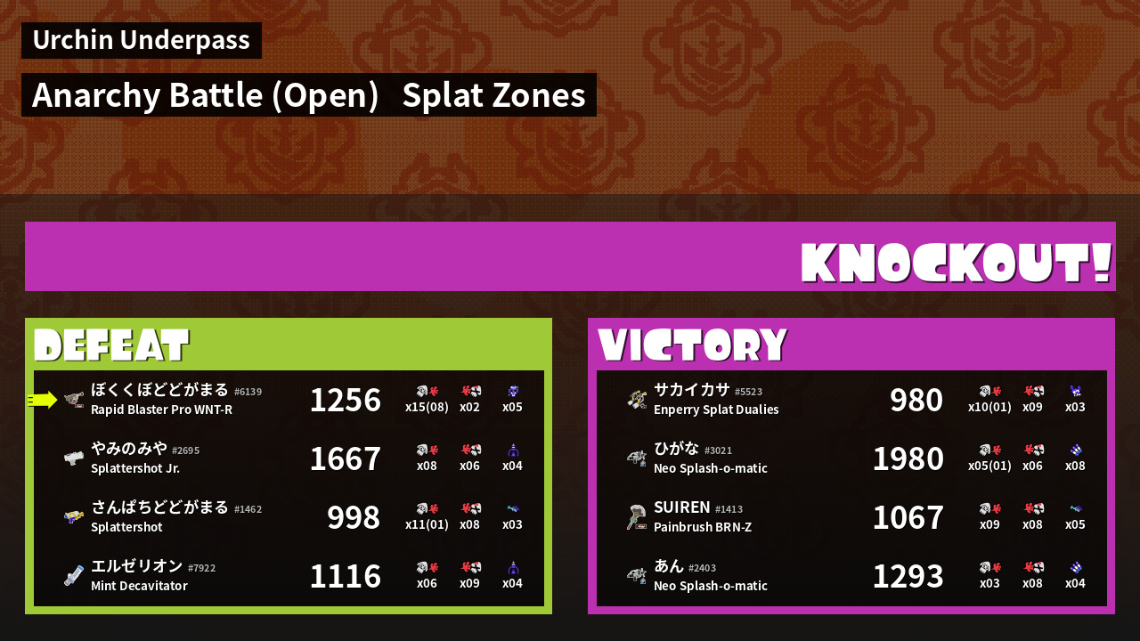 | Mode | Splat Zones - Anarchy Battle (Open) |