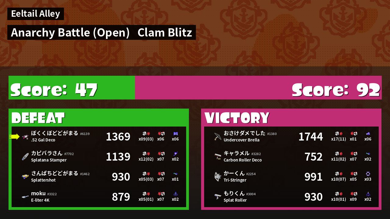| Mode | Clam Blitz - Anarchy Battle (Open) |
