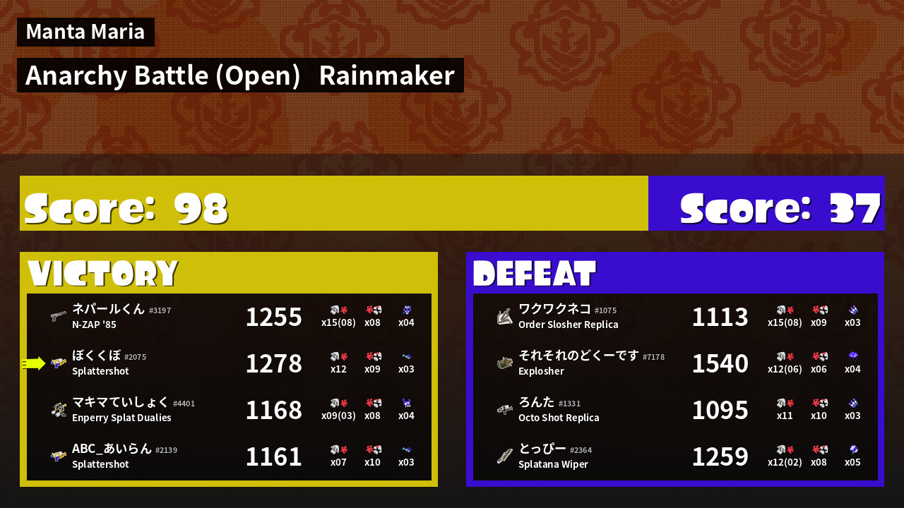 | Mode | Rainmaker - Anarchy Battle (Open) | ||