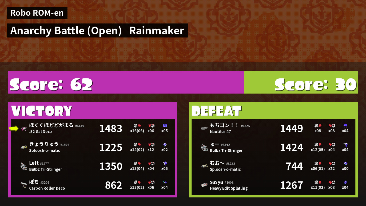 | Weapon | .52 Gal Deco ( Curling Bomb / Splattercolor Screen) |