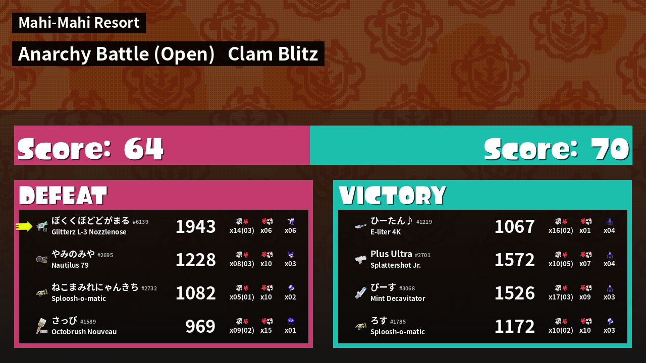 | Mode | Clam Blitz - Anarchy Battle (Open) |