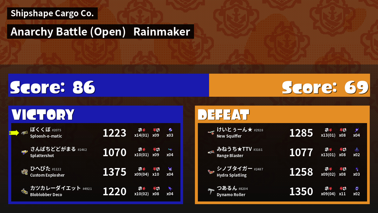 | Mode | Rainmaker - Anarchy Battle (Open) | ||