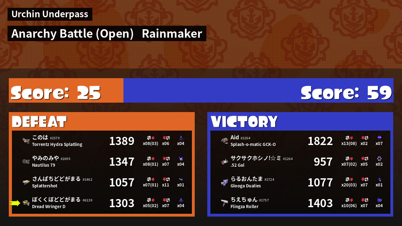 | Mode | Rainmaker - Anarchy Battle (Open) |