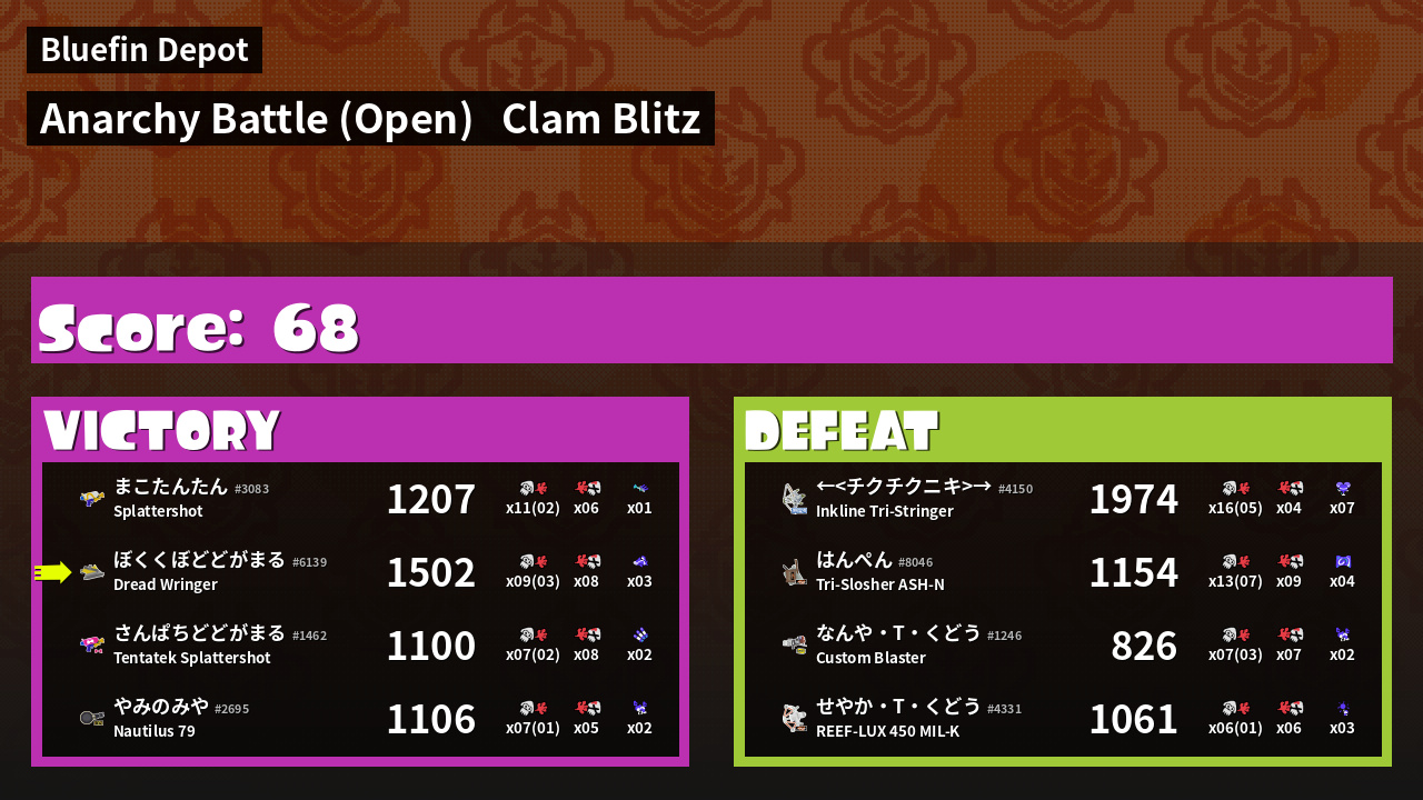 | Mode | Clam Blitz - Anarchy Battle (Open) |