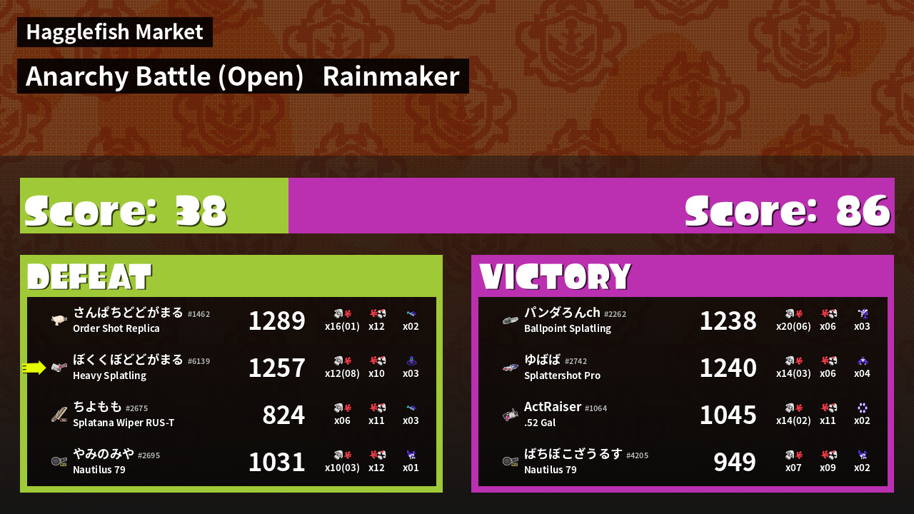 | Mode | Rainmaker - Anarchy Battle (Open) |